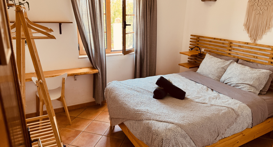 Our private double rooms are equipped with a comfy double bed, a clothes rack and a dresser for you to organize your belongings, a work desk and convenient power outlets for charging your devices. Your ideal room will be assigned based on availability in our booking calendar.